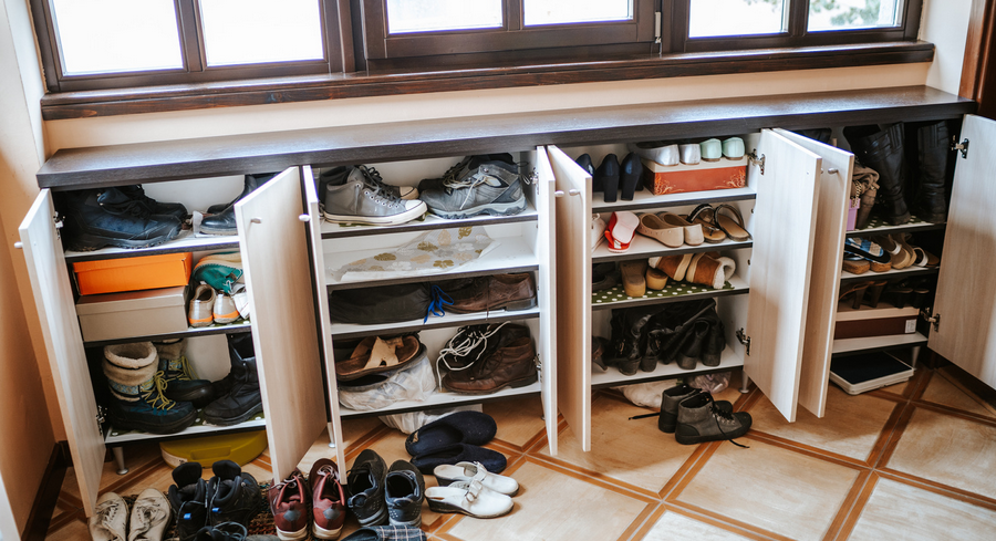 玄関の臭いの最大の原因は靴と靴箱です。靴は1日中履くことで汗や皮脂を吸収し、雑菌が繁殖しやすい環境になります。